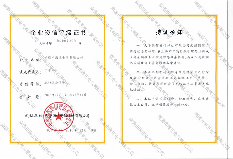 企業(yè)資信等級證書
