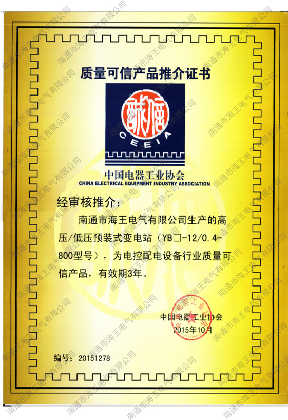 質(zhì)量可信產(chǎn)品推介證書