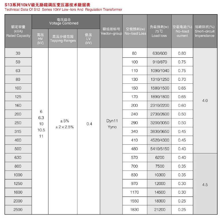 S11~S13-10KV~35KV級低損耗無勵磁調壓變壓器